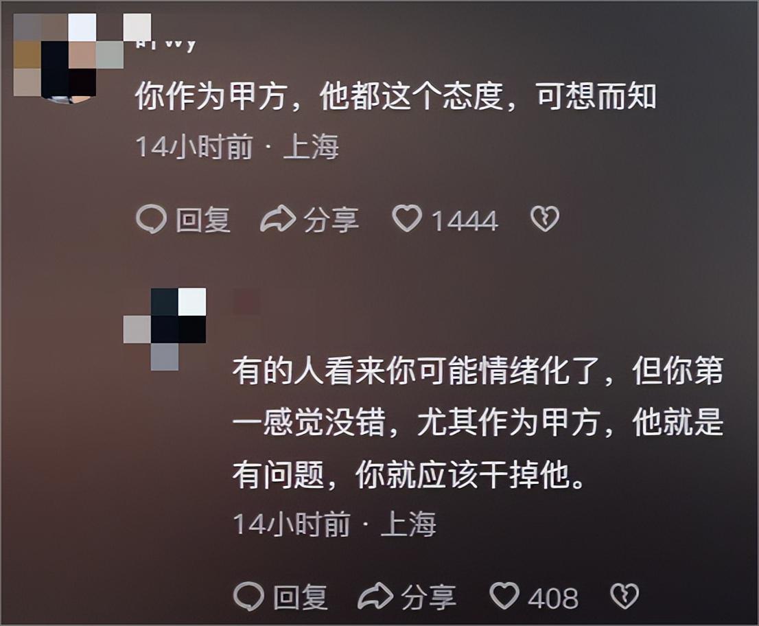 网友表示,一个乙方敢这么和甲方说话,说明他看不起或者心里有怨气。